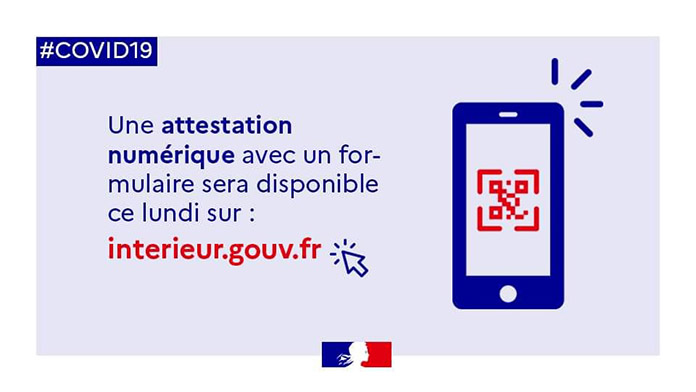 A partir de lundi, on pourra générer le formulaire attestation dérogatoire (celui que vous imprimez actuellement pour chacune de vos sorties) depuis son smartphone et le présenter aux forces de l’ordre qui scanneront un QR code.